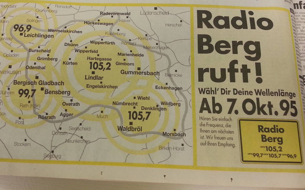 Der 7. Oktober 1995 war für das Bergische historisch: Es bekam einen eigenen Radiosender. Vormittags um 10 Uhr war Radio Berg erstmals im Bergischen zu hören. Was an dem Tag sonst noch los war, beschreibt Brigitte Mackscheidt: