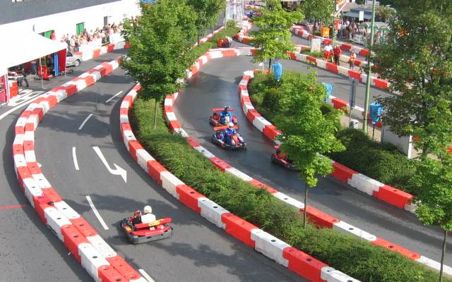 Rennstrecke Rade! Das war ein riesengroßer Event in Radevormwald, das Kart City Race. 2004 waren auch wir mit dabei, mit unserem eigenen Radio Berg Team. Mitten unter Profiteams. Dafür haben wir uns erstaunlich gut gehalten!