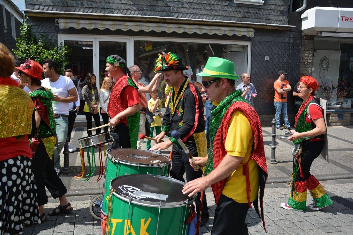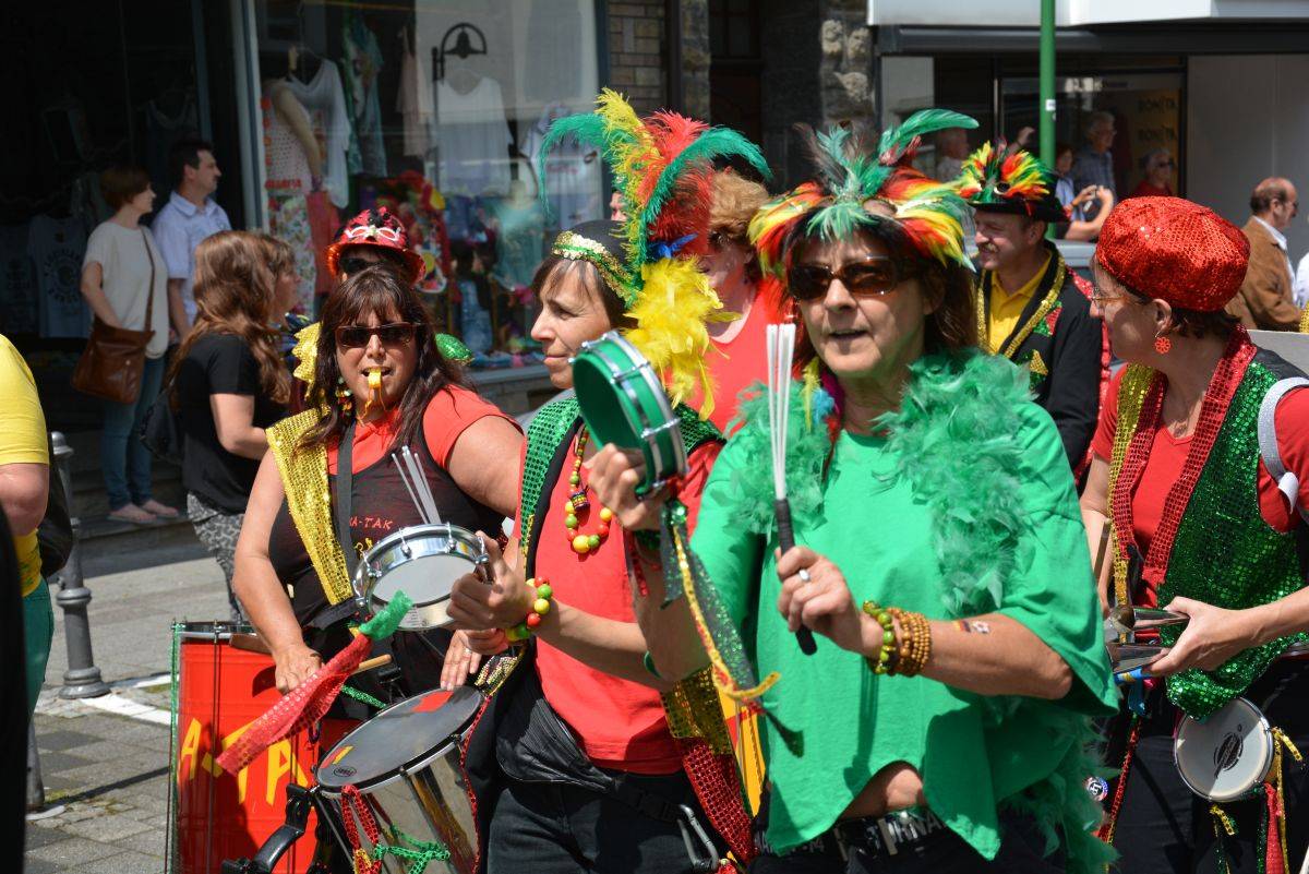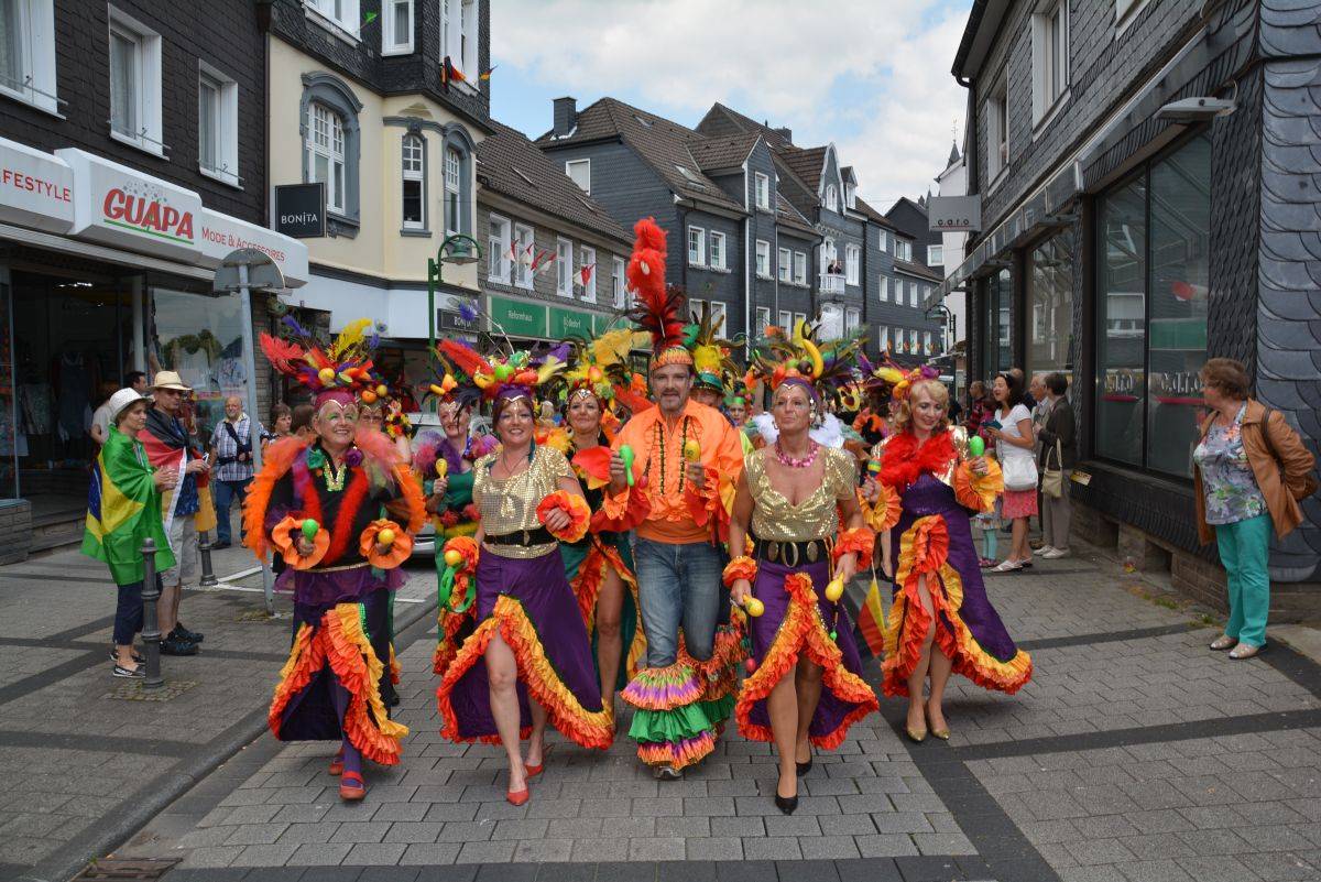 Am 15. Juni 2014, dem WM-Start in Brasilien, haben wir Rio ins Bergische gebracht. Genauer gesagt nach Wipperfürth. Mit dabei waren rund 20 Tanz- und Trommelgruppen. Und so zogen singend, tanzend und trommelnd 200 Menschen durch die Wipperfürther Innenstadt, angeführt von Bürgermeister Michael von Rekowski.