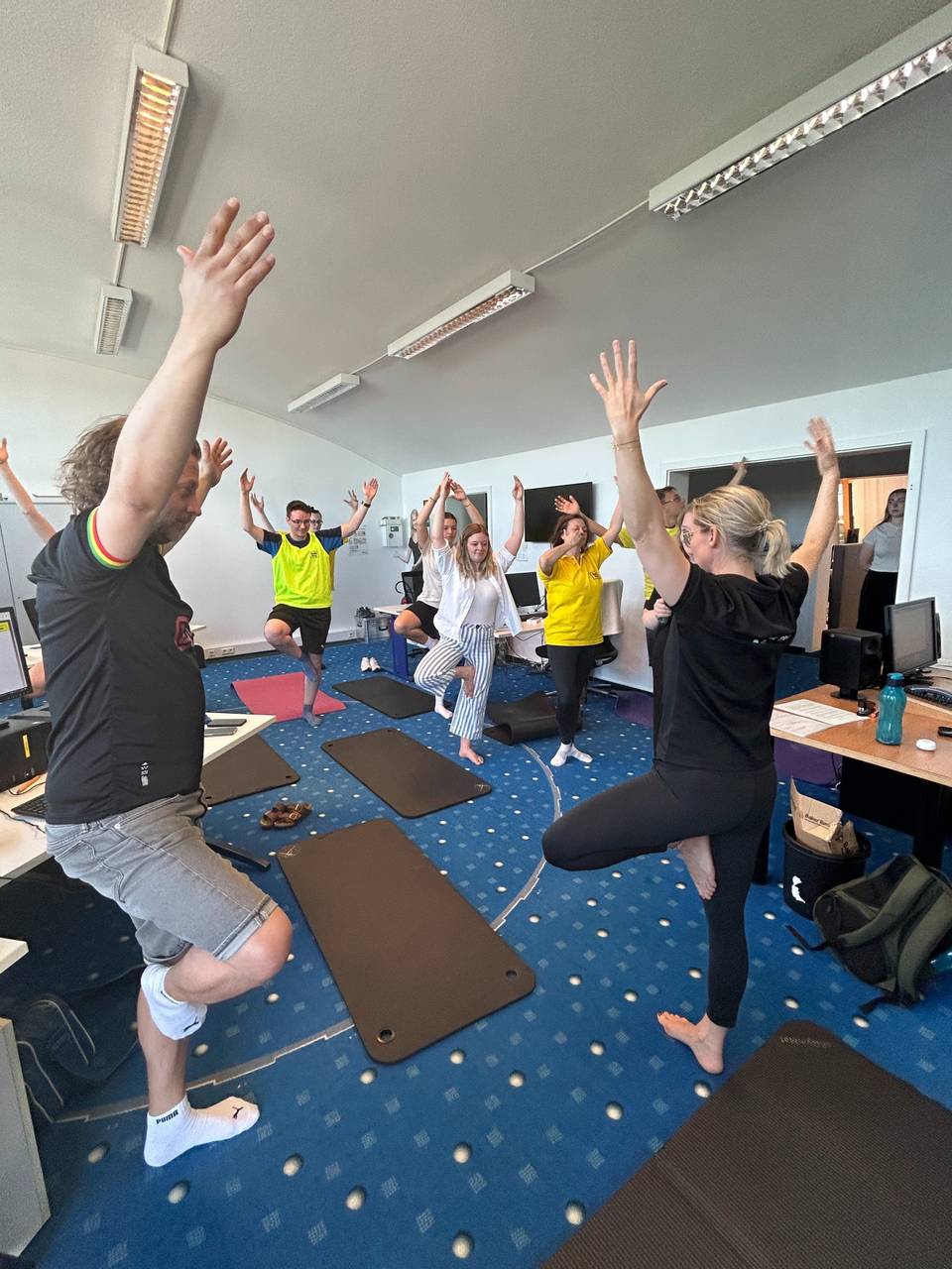 Zusammen sind wir wieder auf den Geschmack gekommen, häufiger wieder Sport in unseren Alltag einzubauen. Häufig hört man Sätze wie "Ich habe doch gar keine Zeit, um Sport zu machen". Aber selbst auf der Arbeit können wir uns durch kurze Übungen wieder besser konzentrieren und Rücken- und Nackenschmerzen vorbeugen, sagt David Linzenich: