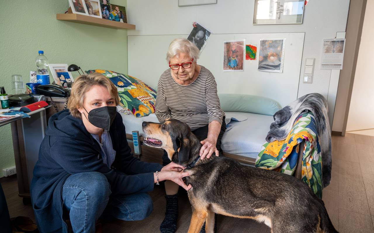 Sabine und Mogli aus Bergisch Gladbach besuchen bereits seit mehreren Jahren eine körperlich schwer behinderte Frau in Refrath: