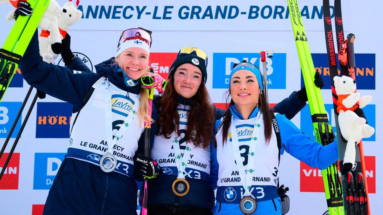 Ihren zweiten Saisonerfolg sicherte sich die Französin Lou Jeanmonnot, die nach einer Strafrunde 30,2 Sekunden Vorsprung auf die fehlerfreie Finnin Suvi Minkkinen hatte. Dritte wurde die Italienerin Dorothea Wierer (1/+ 32,7 Sekunden).