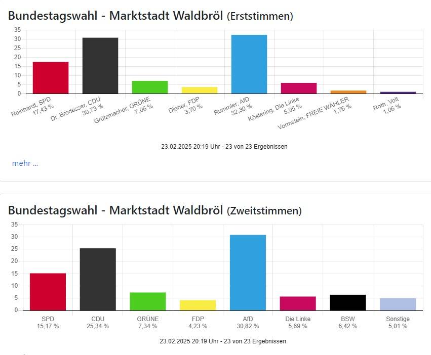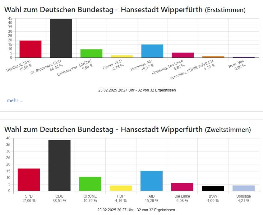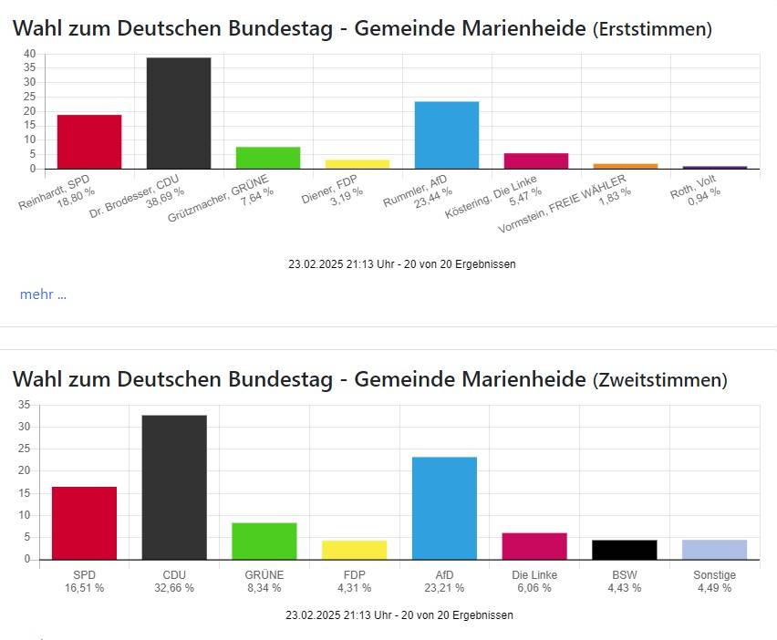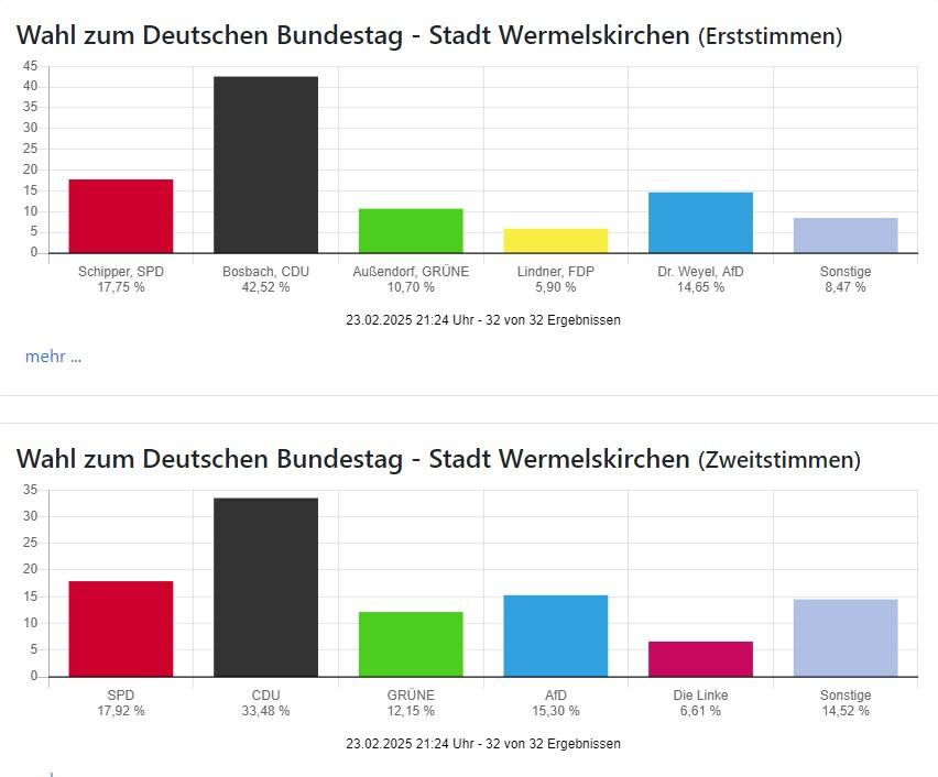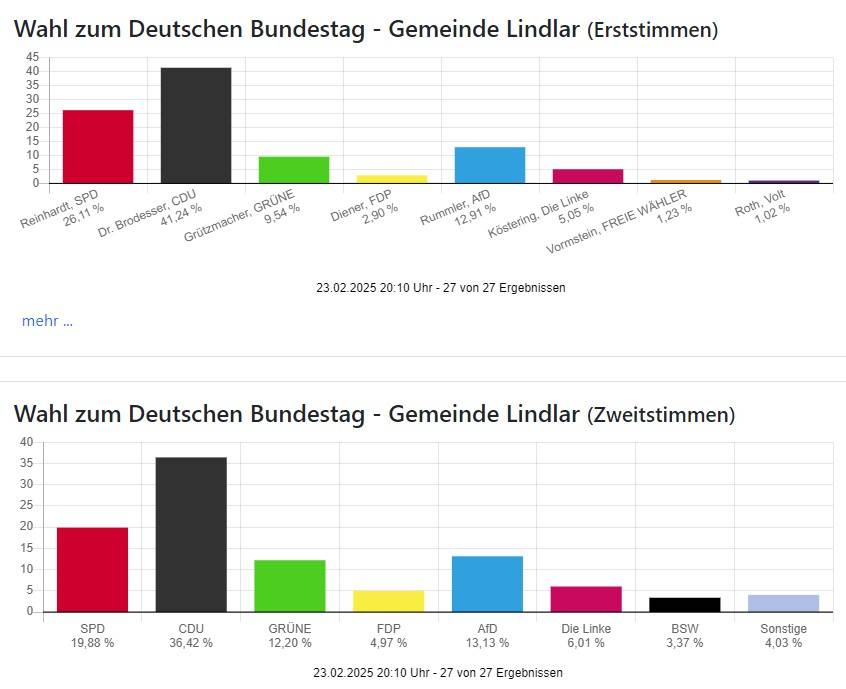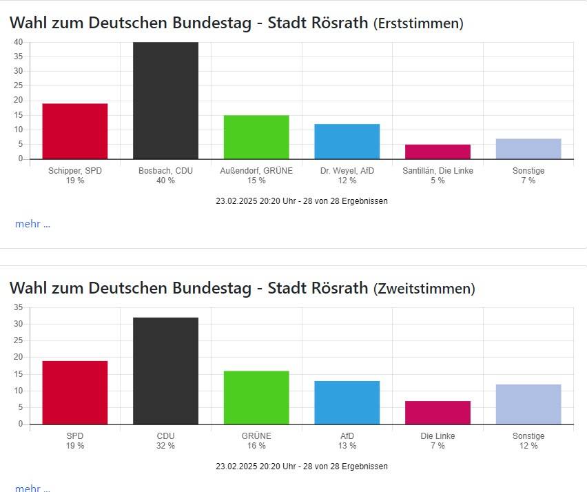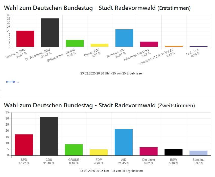 Die Wahlbeteiligung liegt mit 83,11 Prozent in Oberberg und 85,97 Prozent in Rhein-Berg wie auch bundesweit sehr hoch.