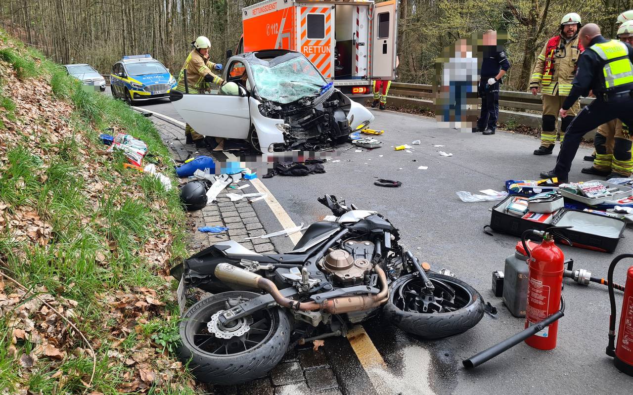 In Burscheid ist ein junger Motorradfahrer am frühen Donnerstagabend lebensgefährlich verletzt worden. Der 18-Jährige war nach Angaben der Burscheider Feuerwehr auf der L58 kurz vor der Einmündung zur Sporrenberger Mühle frontal mit einem Auto zusammengestoßen. Der Motorradfahrer musste von den Einsatzkräften wiederbelebt werden und wurde anschließend mit seinen lebensbedrohlichen Verletzungen in eine Klinik geflogen.
