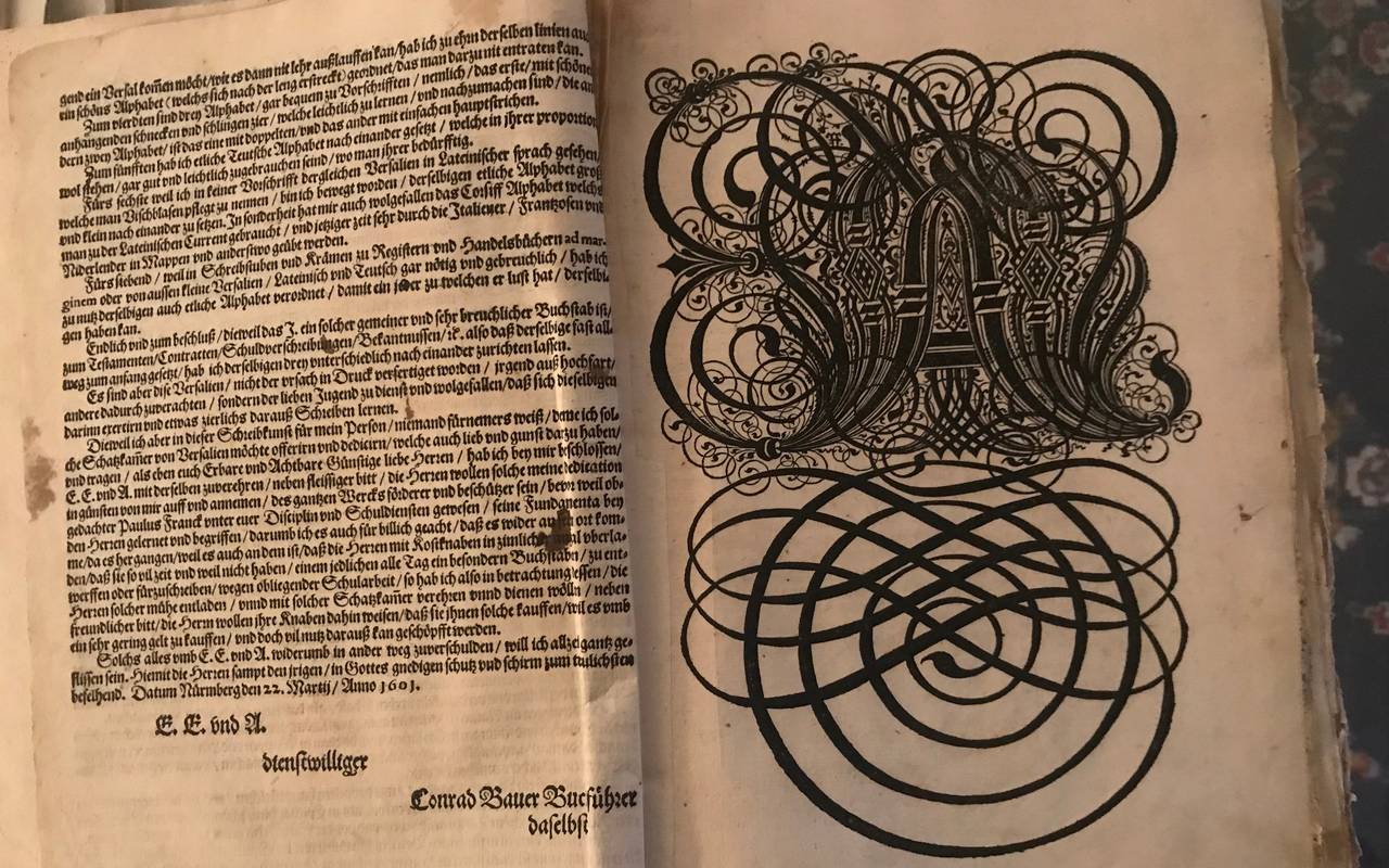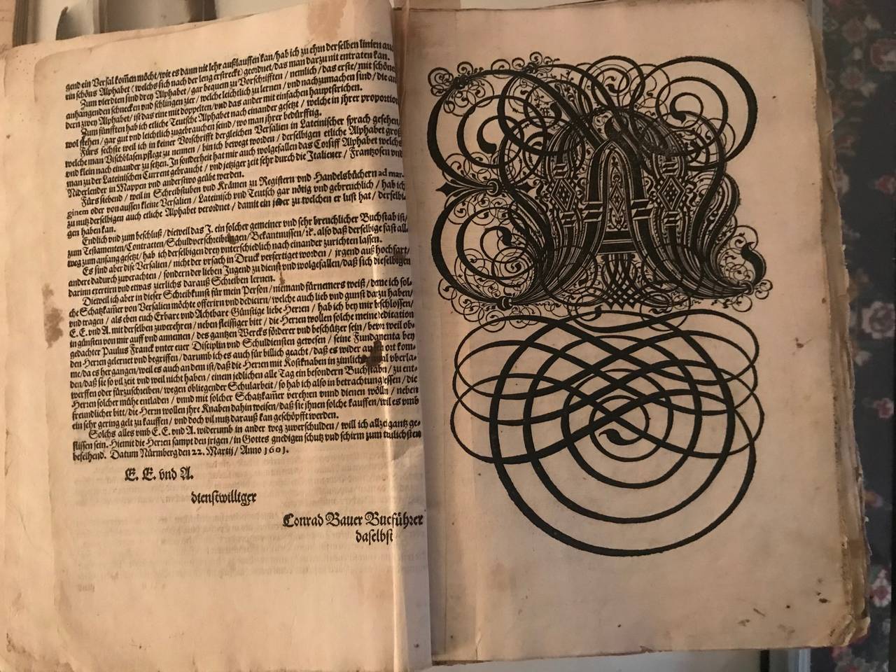 Im Vergleich zu den Schriften in seinen uralten Büchern ist das aber noch gar nix! Besonders beeindruckt hat Heike ein großes A in einem Buch von Sechzehnhundert-eins. Dieses A ist so prächtig, wie ein Schloss mit Schlosspark drumherum. Alleine in dem A stecken schon viele Stunden Arbeit.