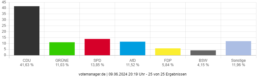 In beiden Bergischen Kreisen zusammen konnten heute, am 09. Juni 2024, 430.416 wahlberechtigte Menschen mit darüber abstimmen, welche Abgeordneten und welche Parteien in das Europäische Parlament einziehen sollen. Zum ersten Mal durften auch Jugendliche ab 16 Jahren an der Wahl teilnehmen. Dadurch ergibt sich im Bergischen im Vergleich zur letzten Europawahl ein Plus von 4.416 Wahlberechtigten. Die Wahlbeteiligung im Oberbergischen Kreis liegt bei 64,49 Prozent, im Rheinisch Bergische Kreis bei 69,47 Prozent. In beiden Kreisen ist die Wahlbeteiligung im Vergleich zur Europawahl 2019 leicht gestiegen. Wie das Bergische bei der Europawahl 2024 im Detail gewählt hat, könnt ihr hier für den Oberbergischen Kreis und hier für den Rheinisch Bergischen Kreis nachlesen.