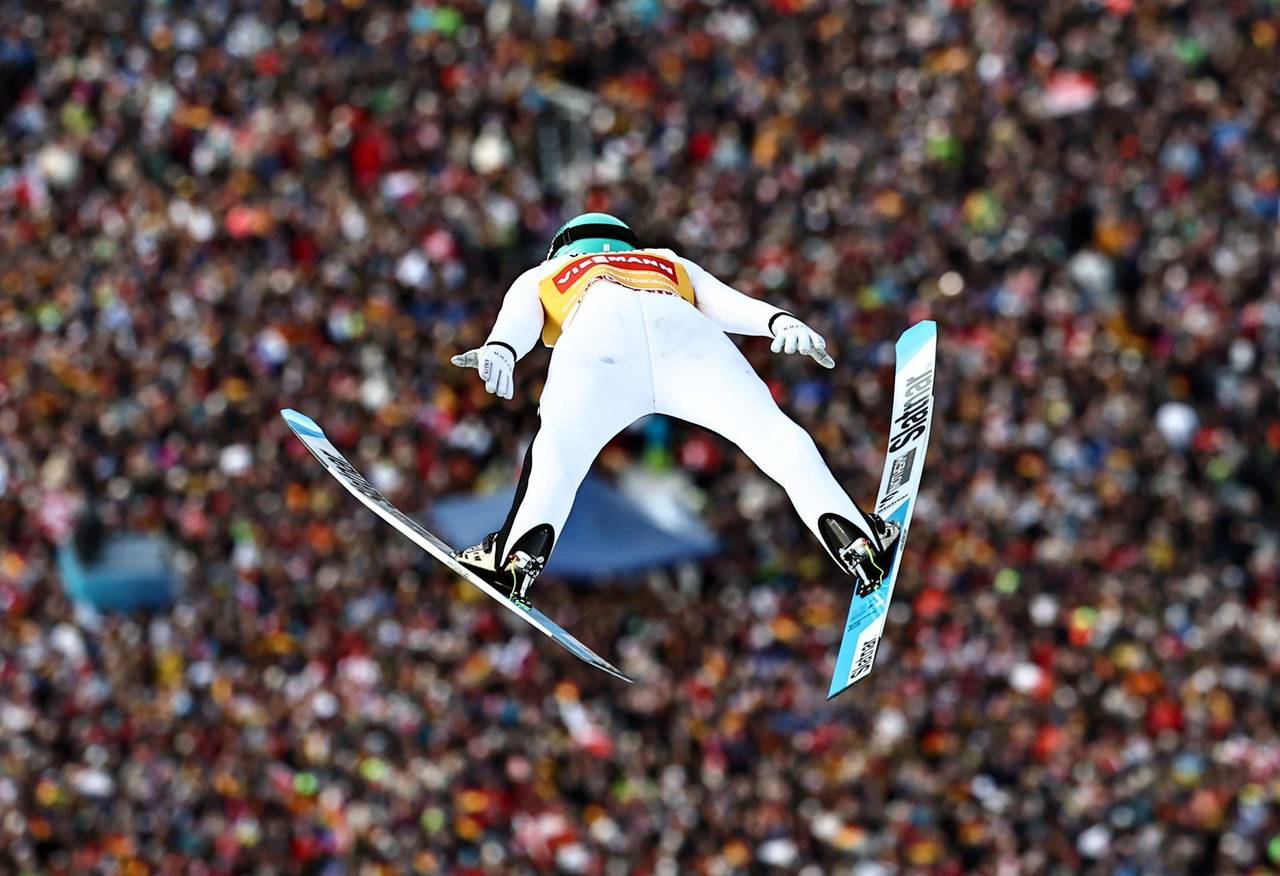 Im Auslauf der Großen Olympiaschanze verneigte sich der Mann im Gelben Trikot vor den 22.000 Fans im ausverkauften Stadion. Es sind Skisprung-Festtage für Prevc und seine Fans. Ein Plakat im Zuschauerbereich stand symbolisch für die bisherige Dominanz des 26-Jährigen: «Domen Prevc - der schlimmste Albtraum der Schwerkraft».