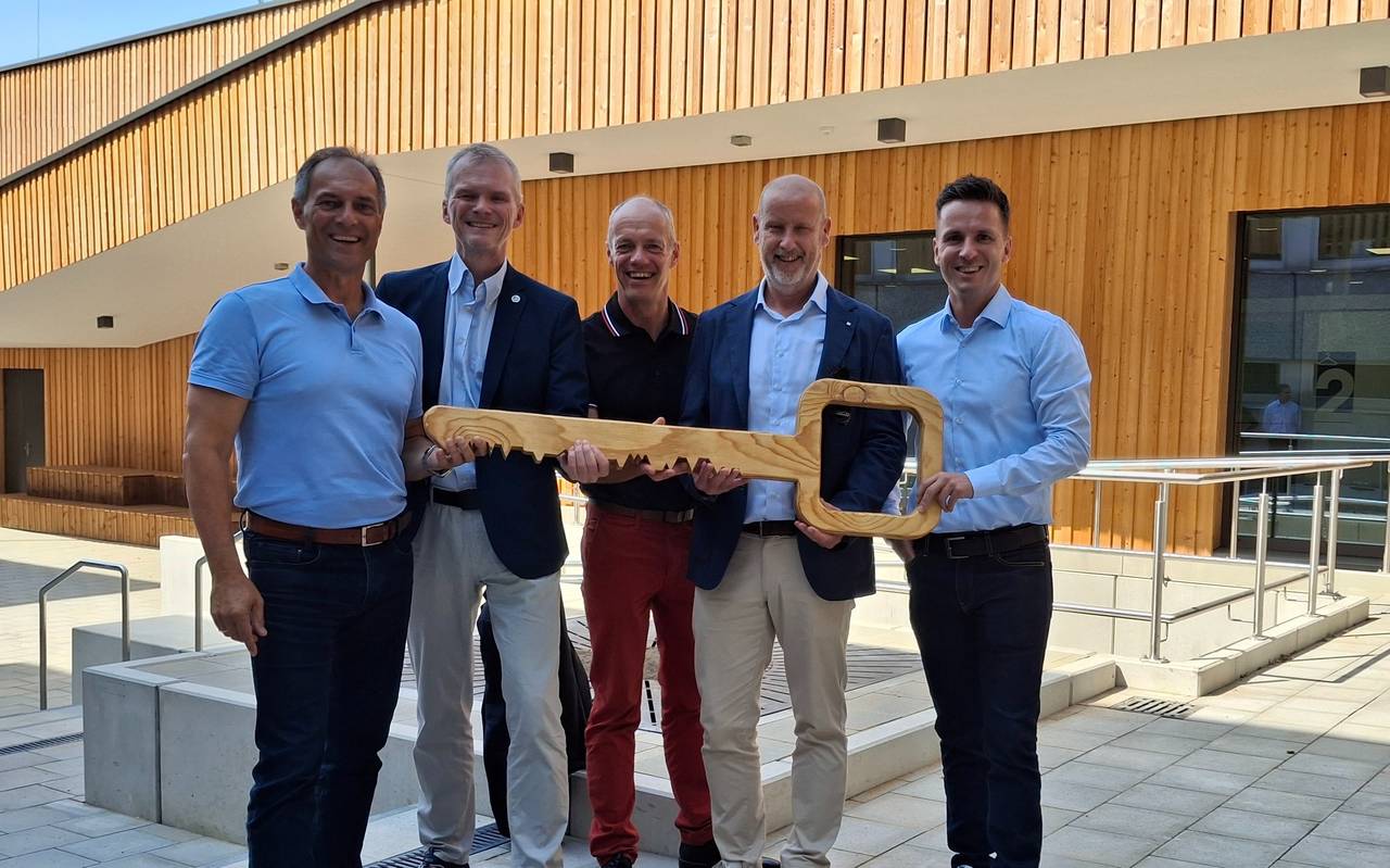 Das klimaneutrale Bauprojekt hat rund 11,7 Millionen Euro gekostet. Der Sport-Komplex ist in moderner Holz-Optik gestaltet. Mit einem wettkampftauglichen 25-Meter-Schwimmbecken und einer Turnhalle bietet die Anlage vielfältige Nutzungsmöglichkeiten für den Schul- und Vereins-Sport.