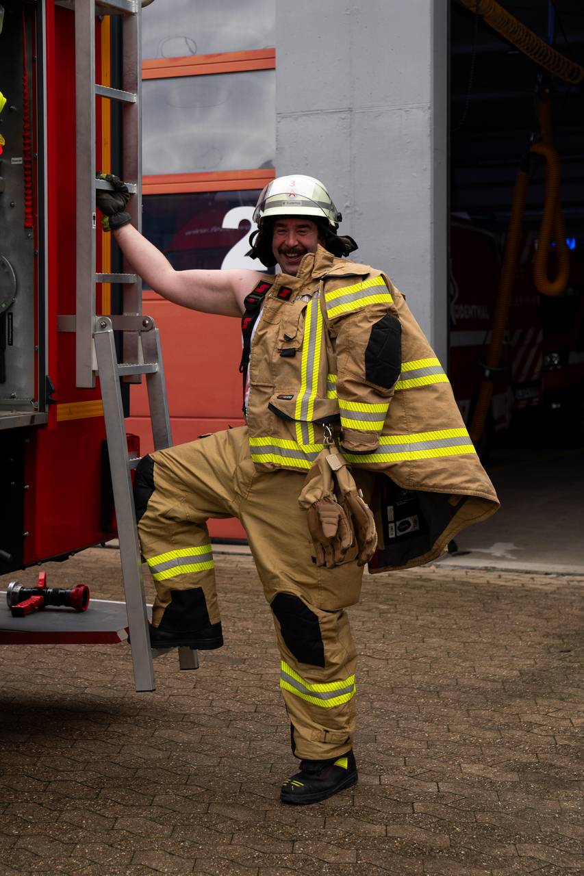 Es war alles improvisiert, also wir haben aus der Kleiderkammer noch Uniformen besorgt, die älter sind. Wir haben hier vor Ort einfach entschieden, was wir jetzt machen, dass wir so ein bisschen auch unser feuerwehrtechnisches Verständnis rüberbringen können.