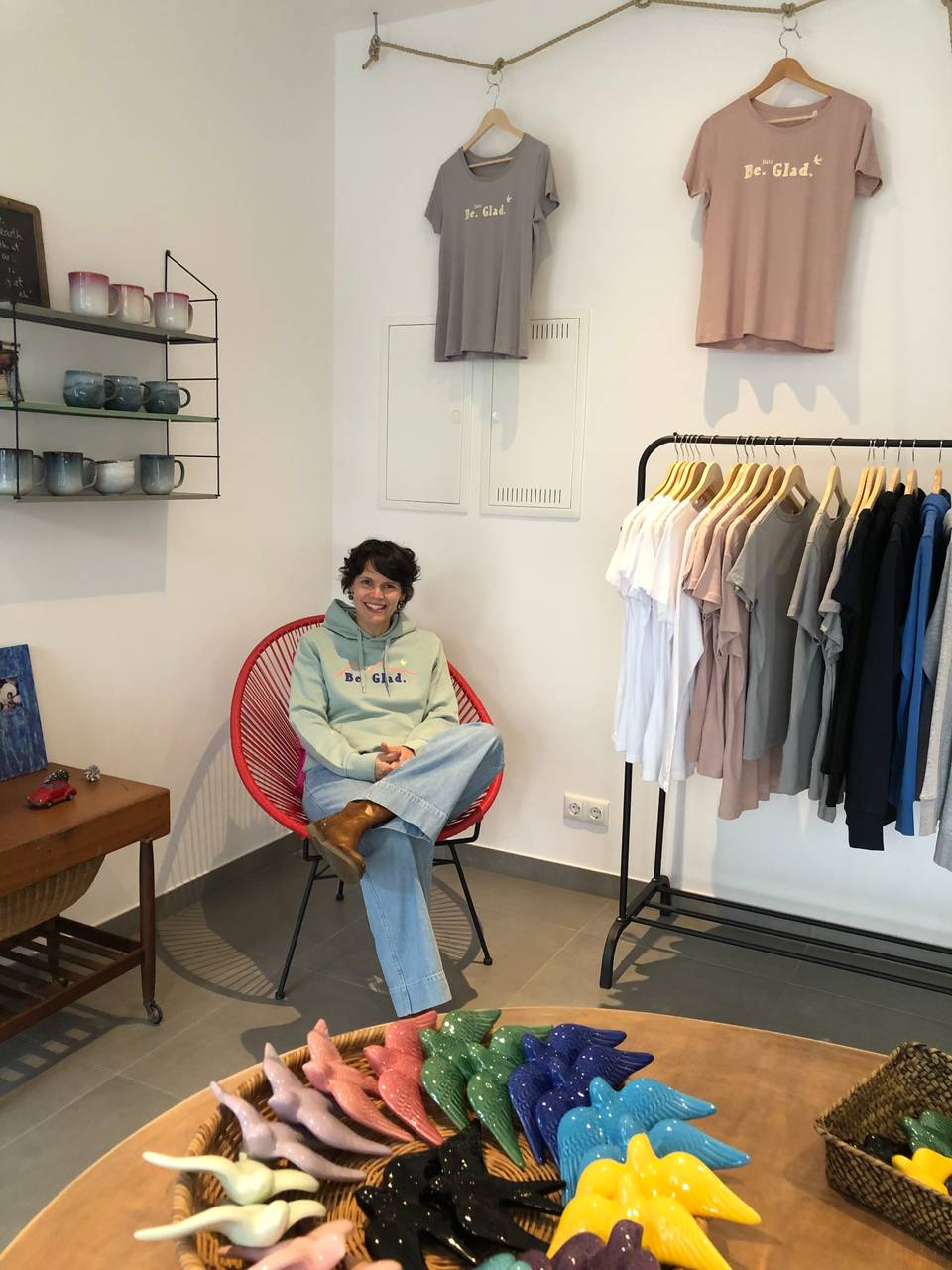 Hand aufs Herz: Wir lieben, wo wir leben. Und damit die Welt davon erfährt, gibt es immer mehr Produkte mit einem Bergischen Label. Denise aus Bergisch Gladbach ist zum Beispiel sehr glücklich, dass sie vor 12 Jahren in der Kreisstadt ihr zuhause gefunden hat. Vor kurzem hat sie ein kleines Geschäft eröffnet, da verkauft sie T-Shirts und Taschen mit dem Logo "just Be.Glad.".