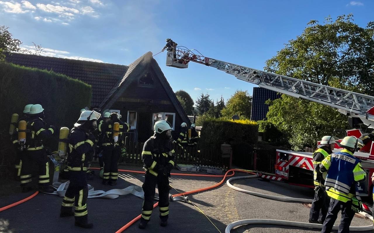 Glücklicherweise besitzt er einen Schlüssel und konnte nachsehen. Als er Rauch bemerkte, rief er die Feuerwehr. Das Feuer hatte sich vom Erdgeschoss aus durch das Rohr einer Dunstabzugshaube bis ins Dachgeschoss ausgebreitet. Bei Eintreffen der Feuerwehr hatten die Flammen auch auf den Giebel der Fassade übergegriffen. Das Feuer war nach etwa 45 Minuten unter Kontrolle. Die Nachlöscharbeiten haben sich noch bis etwa 20 Uhr gezogen. Insgesamt waren 28 Feuerwehrkräfte vom Löschzug Lindlar und der Einheit Remshagen im Einsatz. Weil das Haus unbewohnt war, gibt es zum Glück keine Verletzten.