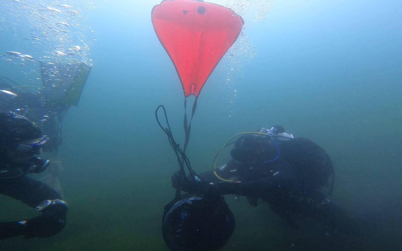 Die beiden haben schon immer versucht, den Müll, der ihnen unter Wasser begegnet, mit an Land zu bringen. Zuerst nur das, was sie in der Hand halten konnten. Mittlerweile haben sie Transportwerkzeuge entwickelt, mit denen sie auch größere Unterwassermüllhalden abräumen können. Da kommen umfunktionierte Gemüsenetze und Kartoffelsäcke zum Einsatz. Aber auch professionelle Auftriebsbojen, die auch LWK-Reifen bergen können.