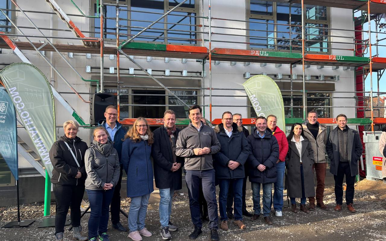 Das zweigeschossige Gebäude wird künftig Platz für Mensa, Küche und Betreuungsräume bieten. Vorgesehen sind unter anderem ein begrüntes Dach, eine Photovoltaikanlage und eine Wärmepumpe. Bürgermeister Marcel Kreutz lobte den zügigen Baufortschritt sowie die gute Zusammenarbeit aller Beteiligten. Für das Projekt stehen 6,9 Millionen Euro zur Verfügung. Die Fertigstellung ist für den Sommer geplant. Anschließend wird auch der Außenbereich neu gestaltet.