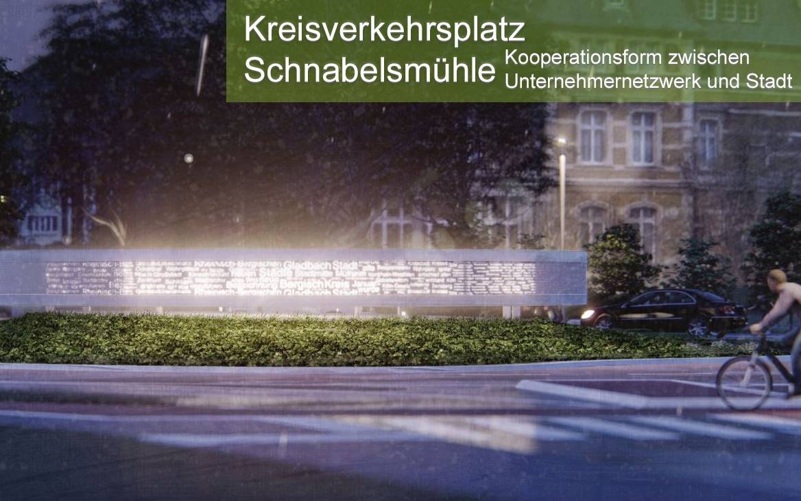 Wie der Kreisverkehr Schnabelsmühle in Bergisch Gladbach aussehen soll, steht schon länger fest: Ein großer Metallring mit eingestanzten Wörtern wird die Innenfläche des Kreisels zieren. Jetzt steht auch fest, welche Wörter eingestanzt werden.