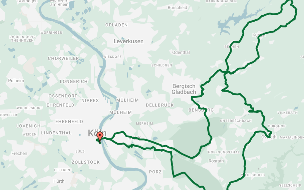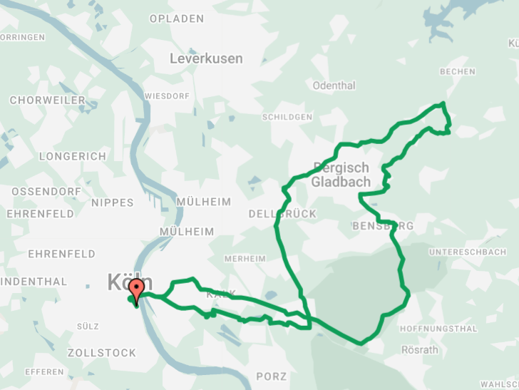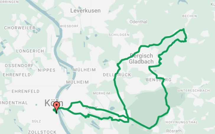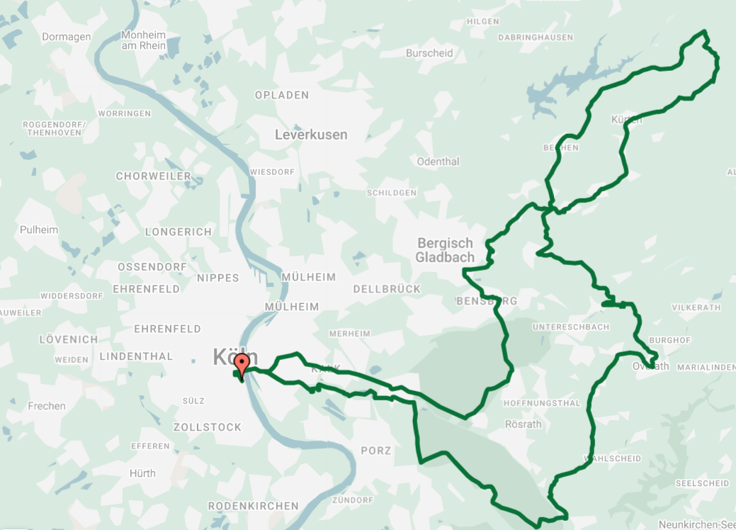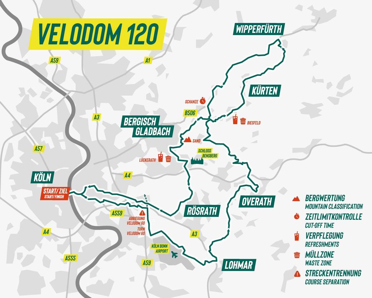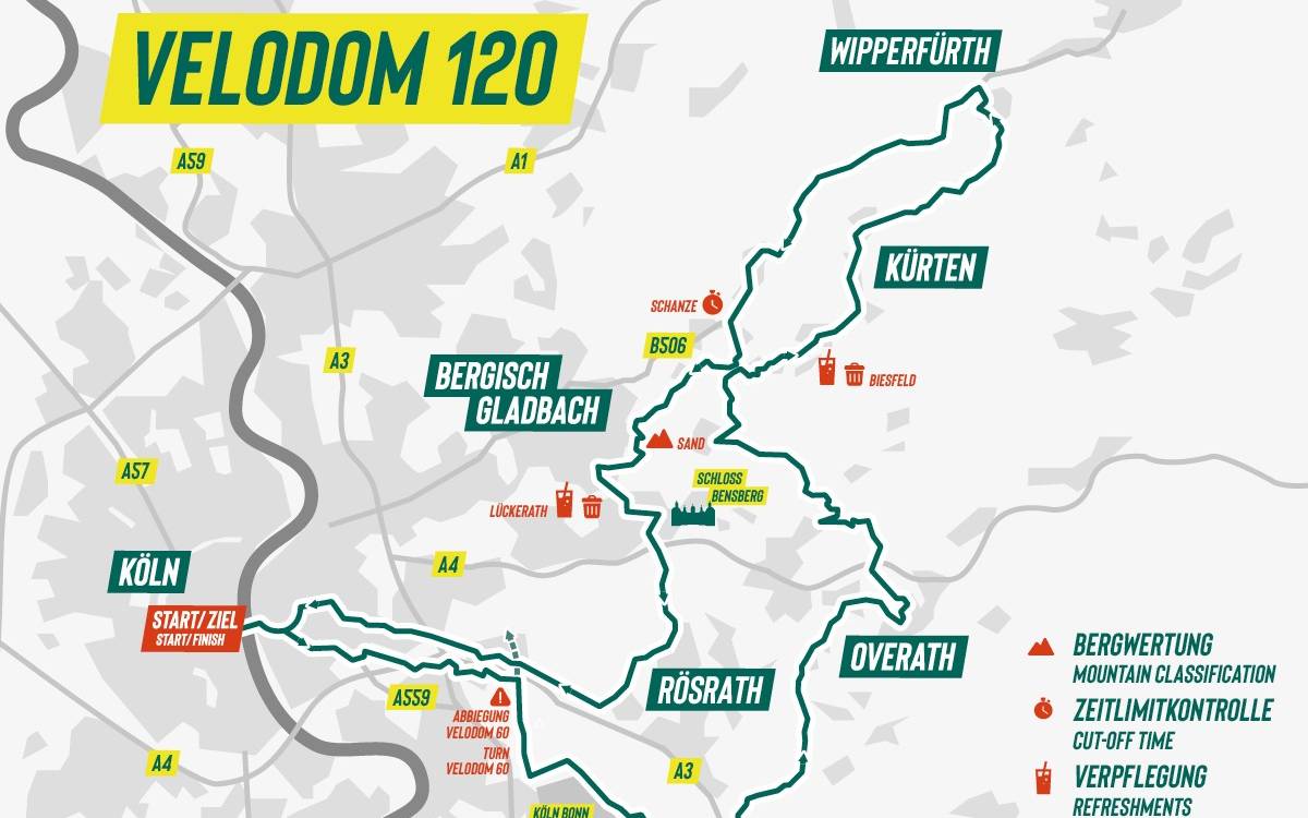 Start und Ziel des Radrennens ist am Rheinauhafen in Köln. Der Großteil der Strecke, knapp 200 Kilometer, verläuft aber durch das Bergische. Die Strecke führt unter anderem über lange Geraden, kurze und anspruchsvolle Anstiege und natürlich wieder über das legendäre Kopfsteinpflaster rauf zum Schloss Bensberg. Auch die Jedermänner radeln dabei größtenteils auf der Strecke der Profis. Die spektakuläre Zieldurchfahrt erfolgt dann wieder für alle im Rheinauhafen.