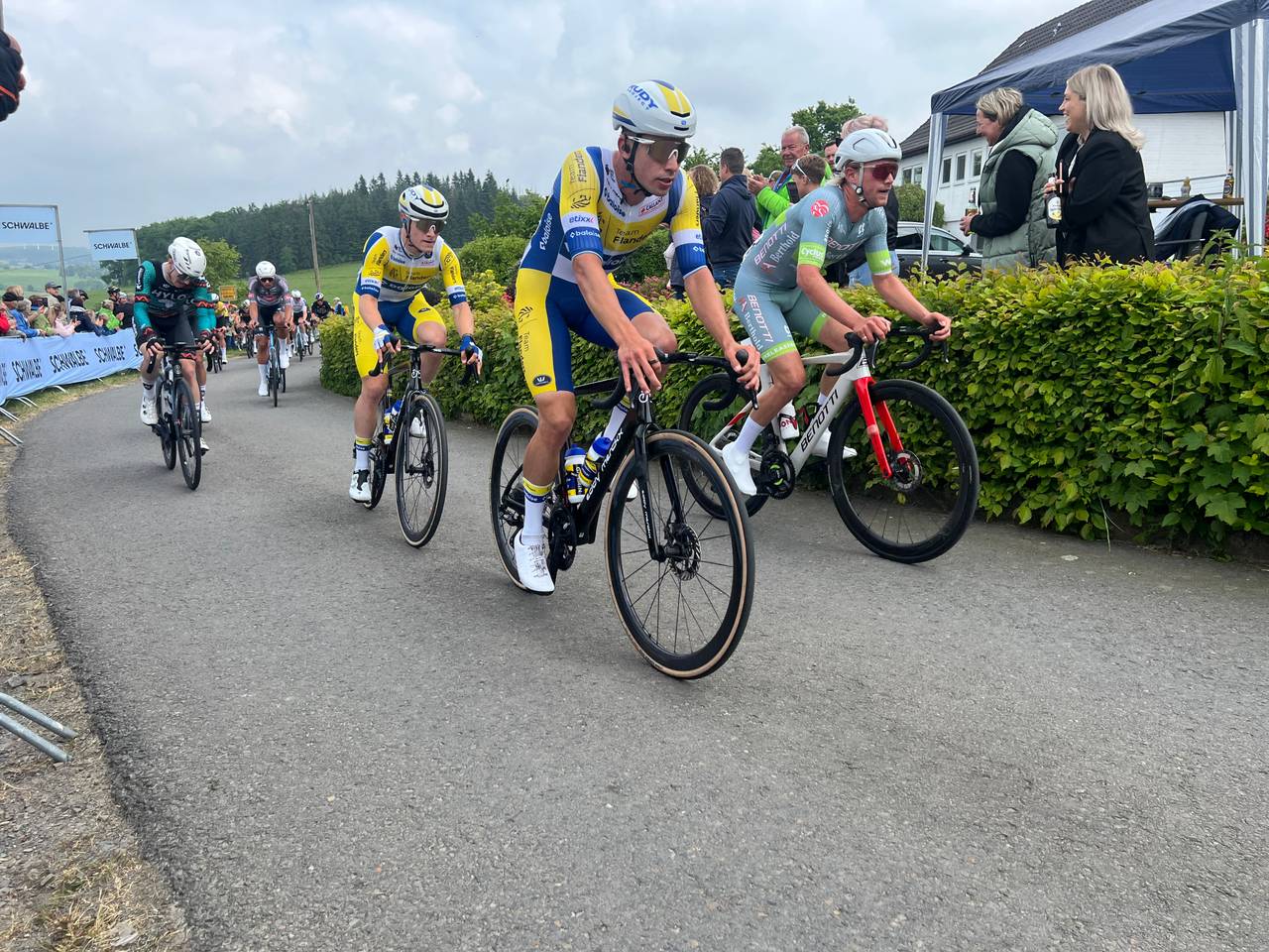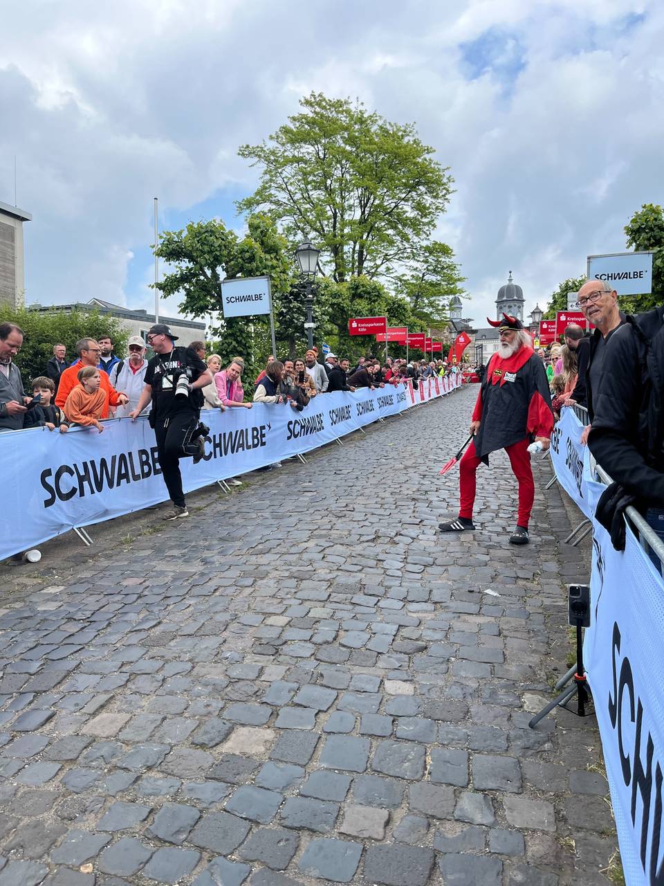 sagt Marco Sülzer vom Sportamt Bergisch Gladbach und lobt damit die Stimmung am legendären Kopfsteinpflaster hoch zum Schloss Bensberg - einer der Höhenpunkte des ganzen Rennens. Das ist sicherlich ein Ort der Vorentscheidung: 23 Kilometer, eine halbe Stunde vor dem Ziel. Neben dem Schloss Bensberg, der Gaststätte Kaisersch Baach und dem Event-Point Sand in Bergisch Gladbach, gibt es aber auch traditionell weitere große Event-Points bei uns im Bergischen: So am legendären Nadelöhr mit 27-Prozent-Steigung am Agathaberg in Wipperfürth, an der Wurstbratrei in Kürten-Spitze und am Ferrenberg in Overath: