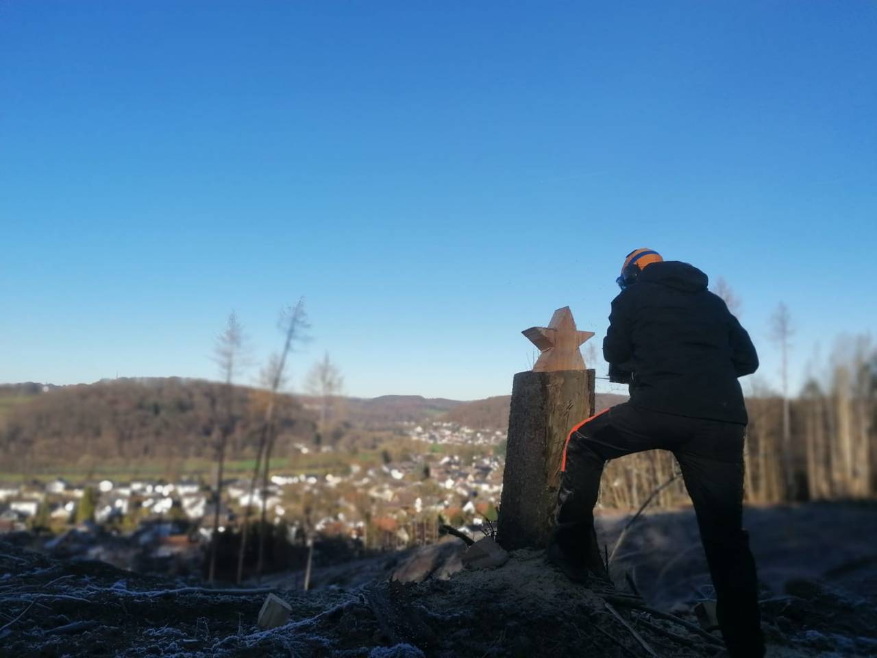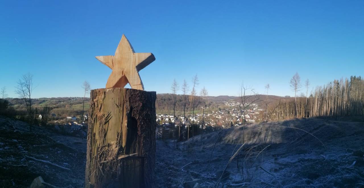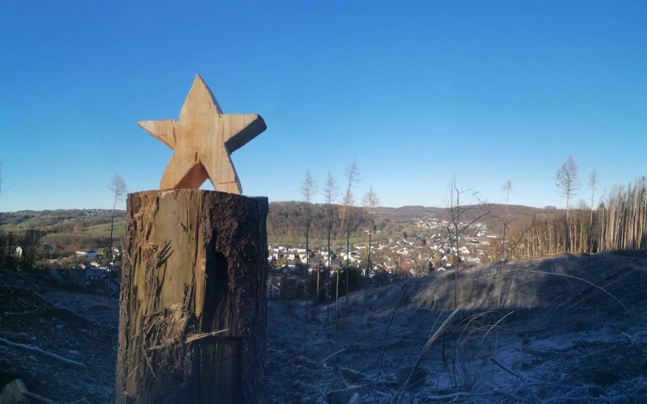 Caroline und Florian aus Lohmar-Neuhonrath haben bei einem ihrer Spaziergänge festgestellt, dass der Wald durch das Fichtensterben ziemlich mitgenommen aussieht. Mit einer Kettensäge haben die beiden zwischen Weihnachten und Neujahr Sterne aus den Baumstümpfen gesägt, um den abgeholzten Wald wieder zu einem schöneren Ort zu machen.