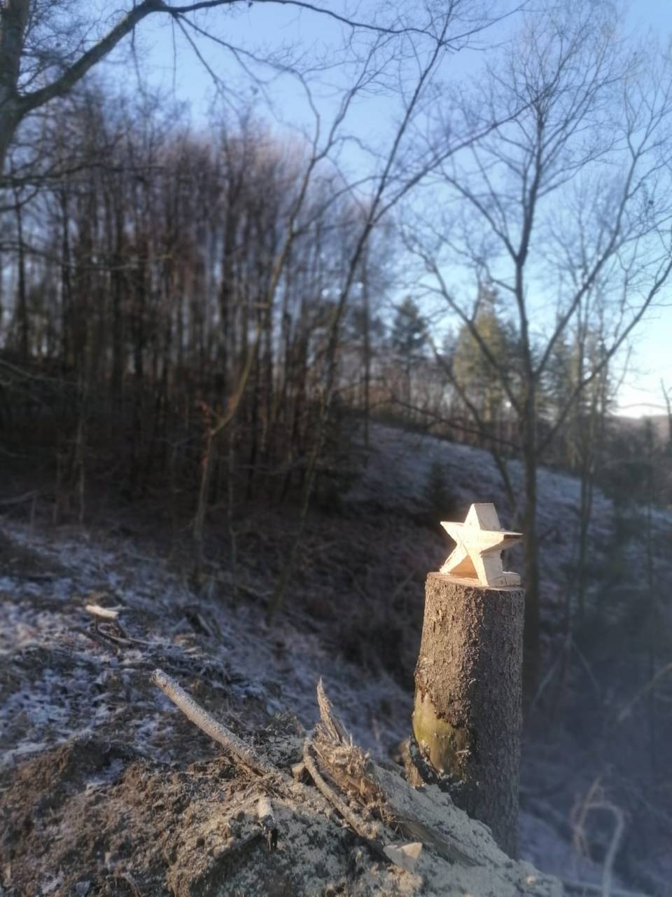 Dann haben wir den Waldbesitzer gefragt, ob wir vielleicht die übrigen Baumstümpfe verschönern dürfen und der war mehr als begeistert, dass wir ein bisschen Flair in diesen Friedhof bringen. Wir sind jetzt gespannt, ob die Sterne die nächste Aufforstung überleben. Wenn sie tatsächlich weg müssen, können wir sie vielleicht für einen guten Zweck versteigern.