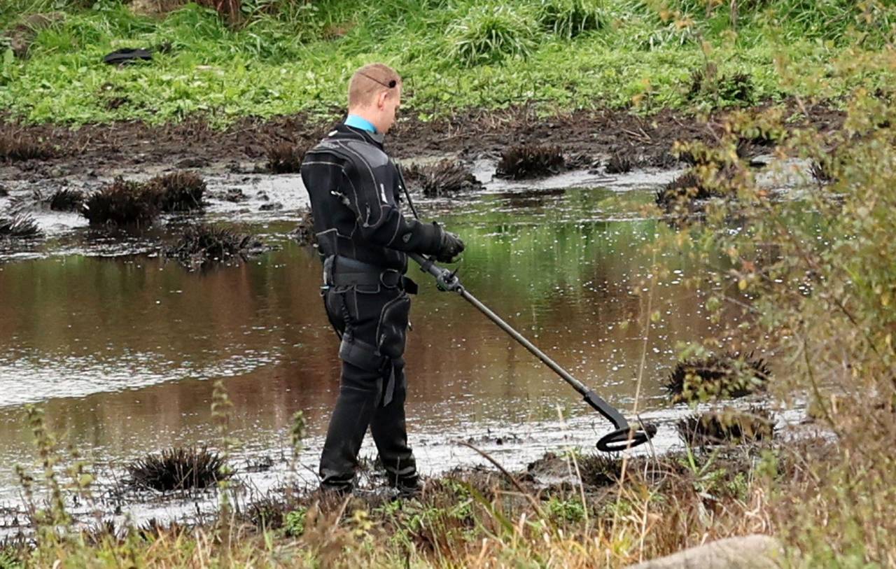 Die Polizei durchsuchte demnach das Gewässer mit einem Gerät, das wie ein Metalldetektor aussah. Nach Angaben des dpa-Fotoreporters benutzten die Einsatzkräfte im benachbarten Gebüsch auch eine Motorsäge. Sie entfernten das Gebüsch. Am frühen Nachmittag zog die Polizei demnach wieder ab. Zur Frage, ob die Einsatzkräfte dort am Freitag etwas fanden, sagte Nowack wenig später, darüber habe er keine Kenntnis.