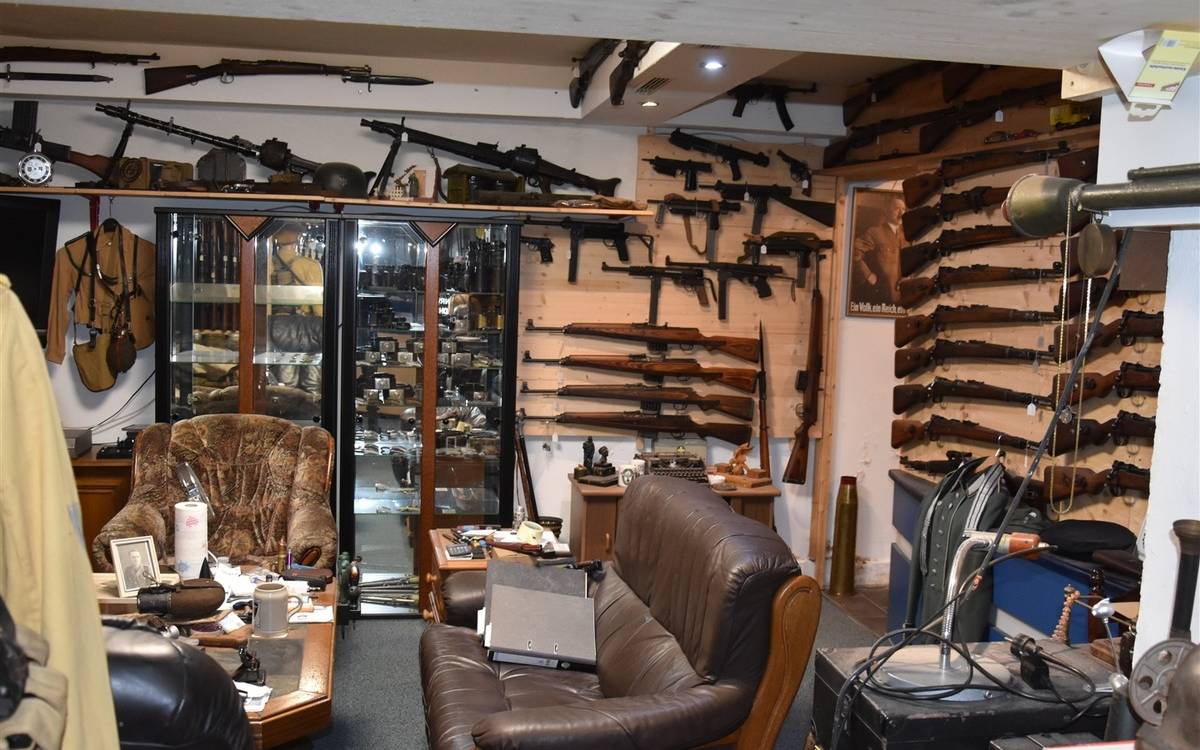 Pistolen, Flinten und Maschinengewehre, all das haben Polizisten in dem Mehrfamilienhaus in der Elberfelder Straße entdeckt. In dem illegalen Waffenlager wurden zudem 13 Panzerabwehrwaffen, Armbrüste sowie Hieb- und Stichwaffen sichergestellt. Außerdem entdeckten die Ermittler Waffenteile und tausende Schuss Munition, teils in gut getarnten Geheimräumen im Keller.