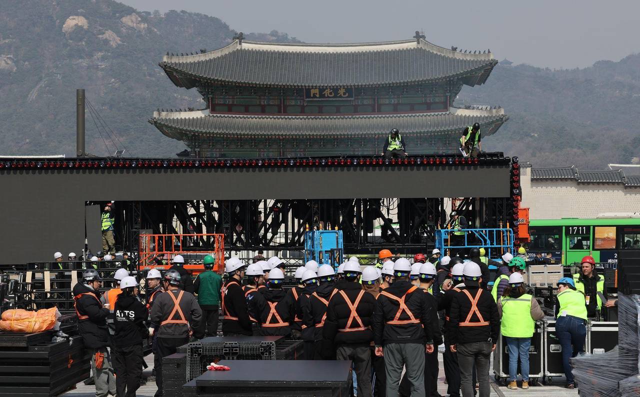 Seoul (dpa) - Kurz vor dem wohl größten musikalischen Comeback der letzten Jahre verwandelt sich das Zentrum der südkoreanischen Hauptstadt in eine riesige Outdoor-Bühne. Am Gwanghwamun-Platz in Seoul wird die Erfolgsband BTS diesen Samstag nach knapp vier Jahren ihr erstes Konzert geben, über eine halbe Million Zuschauer werden Schätzungen der Behörden nach erwartet. Um Massenanstürme zu vermeiden, wird der Verkehr in der Innenstadt weitgehend gesperrt, U-Bahn-Stationen geschlossen und mehrere tausend Einsatzkräfte der Polizei mobilisiert.